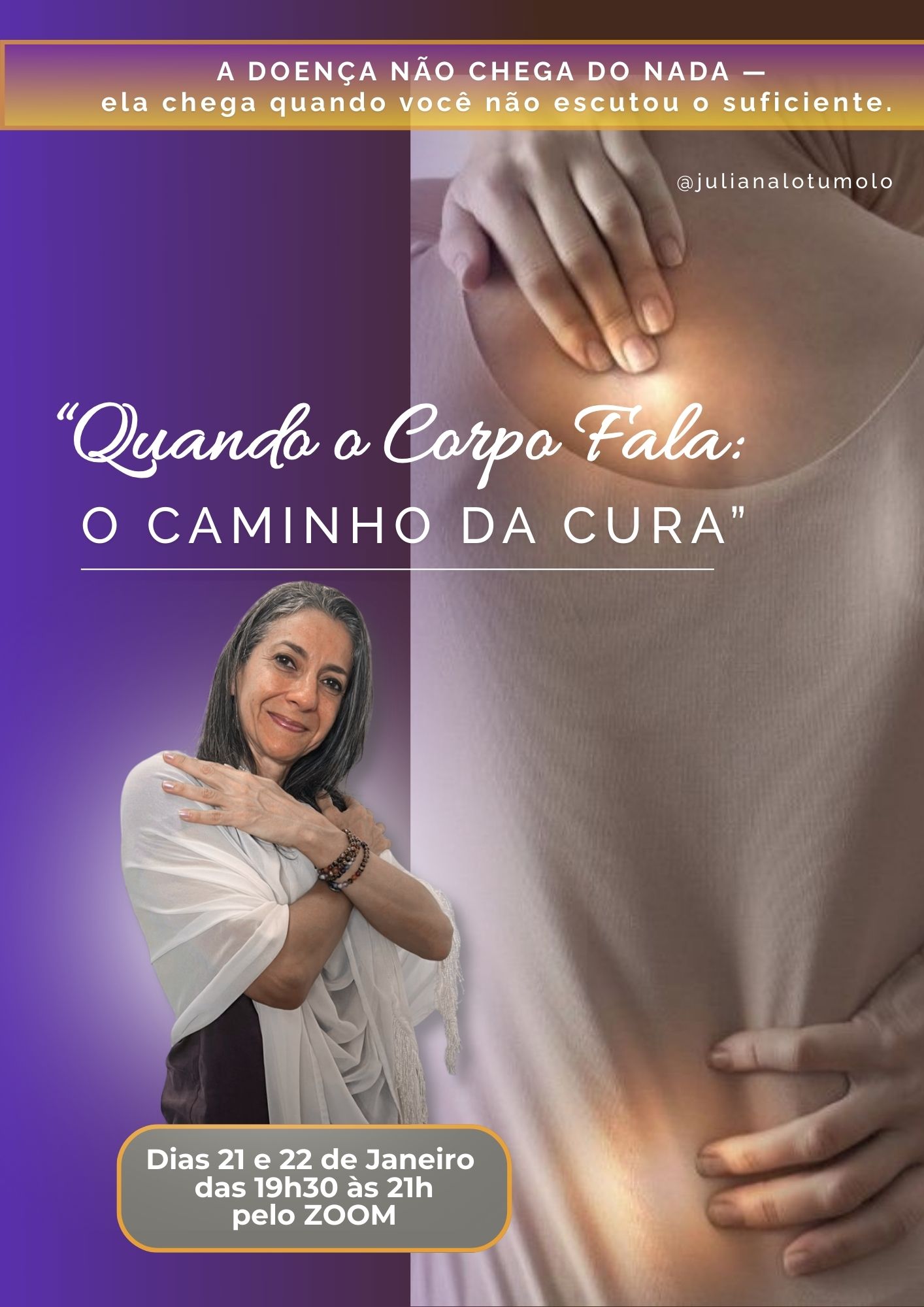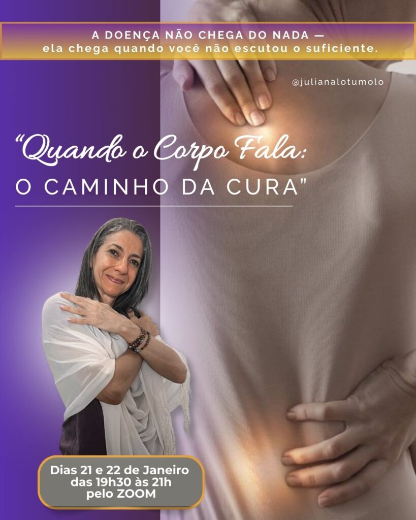 Esta vivência será conduzida por Juliana Lotumolo, terapeuta com atuação profunda nas áreas de Psicologia Transpessoal, Constelações Sistêmicas, processos de cura emocional, energética e consciência corporal.